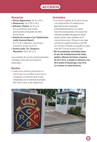 • Vestuarios: de 6:30 a 24 h. a su disposición 12 invitaciones