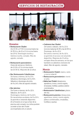 • Restaurante Chalet: De lunes a sábado, de 8 a 23 h