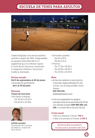 de Adultos y monitor de incluye polo y pantalón del Club.