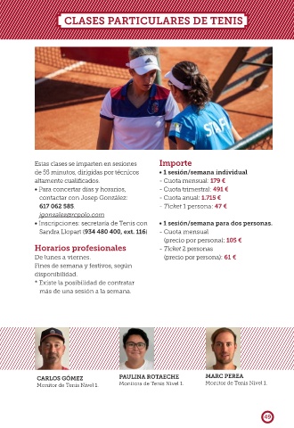 • Inscripciones: secretaría de Tenis con • 1 sesión/semana para dos personas.