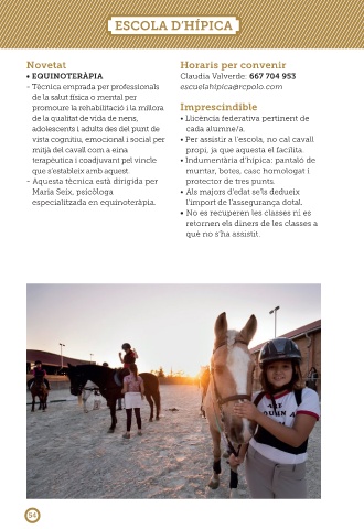 • EQUINOTERÀPIA Claudia Valverde: 667 704 953