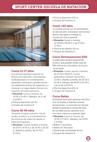 • Piscina deportiva (25 m) con los bebés y explorar nuevas