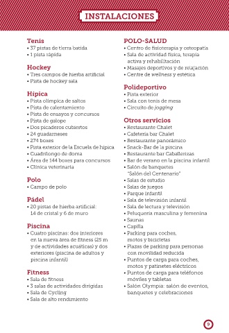 • Campo de polo • Salas de juegos